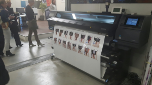 bij binnenkomst zijn gebruikt om een sticker en een bordje van te maken. Op de foto hieronder worden op de grote machine de bordjes geprint, terwijl op volgende foto de stickers te zien zijn. Nadien zijn deze met de snijmachine gesneden en krijgt iedereen zijn of haar foto op bordje en sticker mee. Een uitermate creatief en origineel idee.